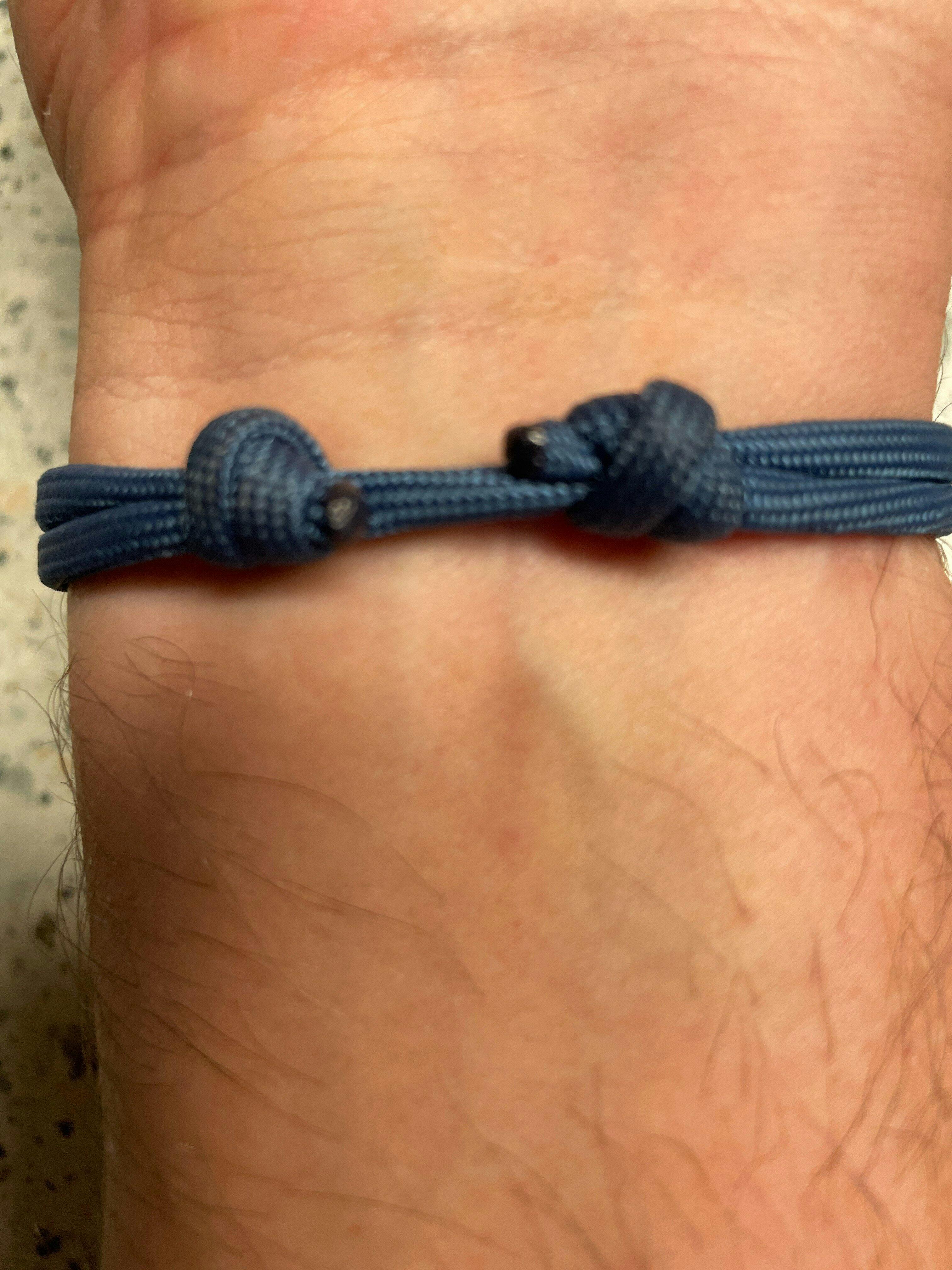 Das Armband lässt sich ganz leicht an den Knoten größer ziehen, umlegen und dann wieder zuziehen.